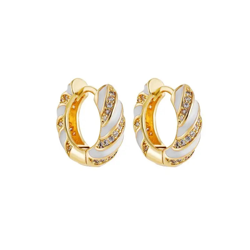 Vintage Cloisonne Rhinestone Huggie Hoop Earrings